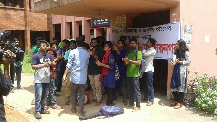 প্রসঙ্গত বিশ্ববিদ্যালয়ের চলমান মেগা প্রকল্পের মাস্টার প্ল্যান অস্বচ্ছ ও অপূর্ণাঙ্গ বলে দাবি করে আন্দোলন করে আসছেন একদল শিক্ষক-শিক্ষার্থী। ‘দুর্নীতির বিরুদ্ধে জাহাঙ্গীরনগর’ ব্যানারে তিন দফা দাবিতে মঙ্গলবার সারা দিন দুটি প্রশাসনিক ভবন অবরোধ করেন তারা।
