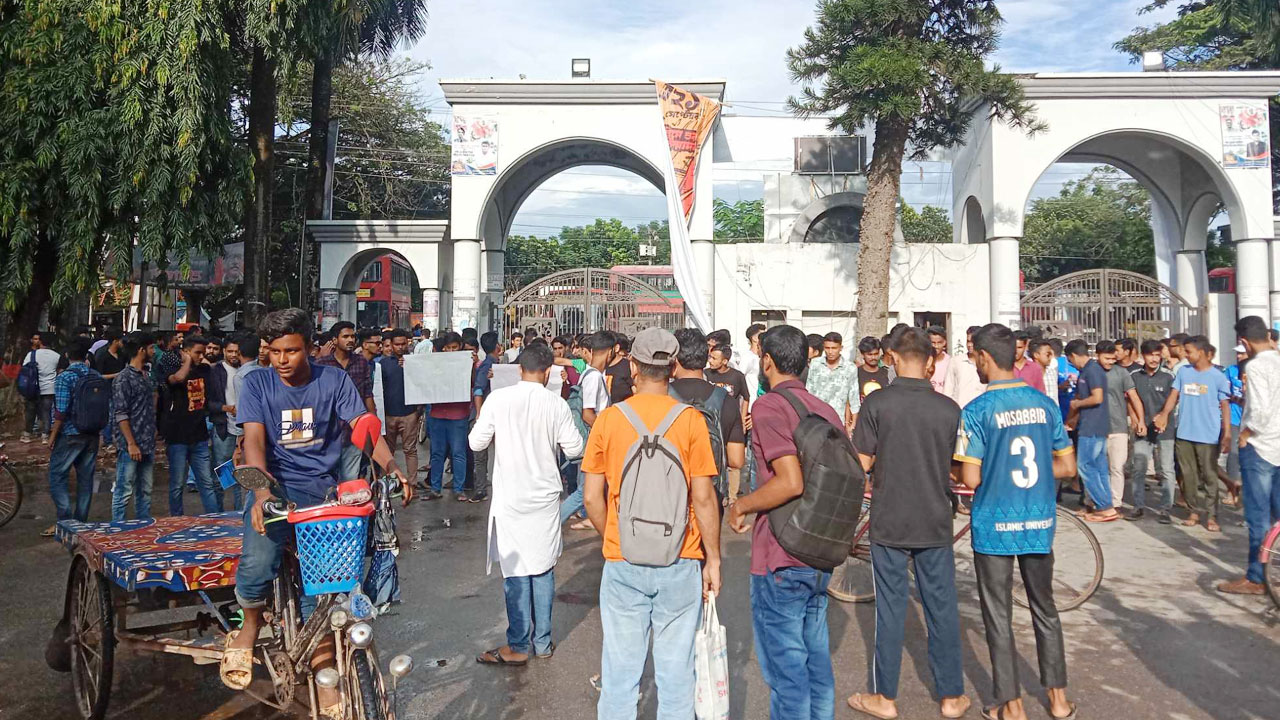 এ ঘটনার প্রেক্ষিতে বিকেল ৪টার দিকে প্রধান ফটকে তালা দেন শিক্ষার্থীরা। বিশ্ববিদ্যালয়ের প্রক্টরিয়াল বডি পরিবেশ শান্ত রাখার চেষ্টা করেও ব্যর্থ হয়। পরে ২৪ ঘণ্টার মধ্যে ভিডিও বার্তার মাধ্যমে সিদ্ধান্ত প্রত্যাহারের দাবি জানিয়ে বিকেল ৫টায় ৪০ মিনিটে আন্দোলন স্থগিত করেন তারা।