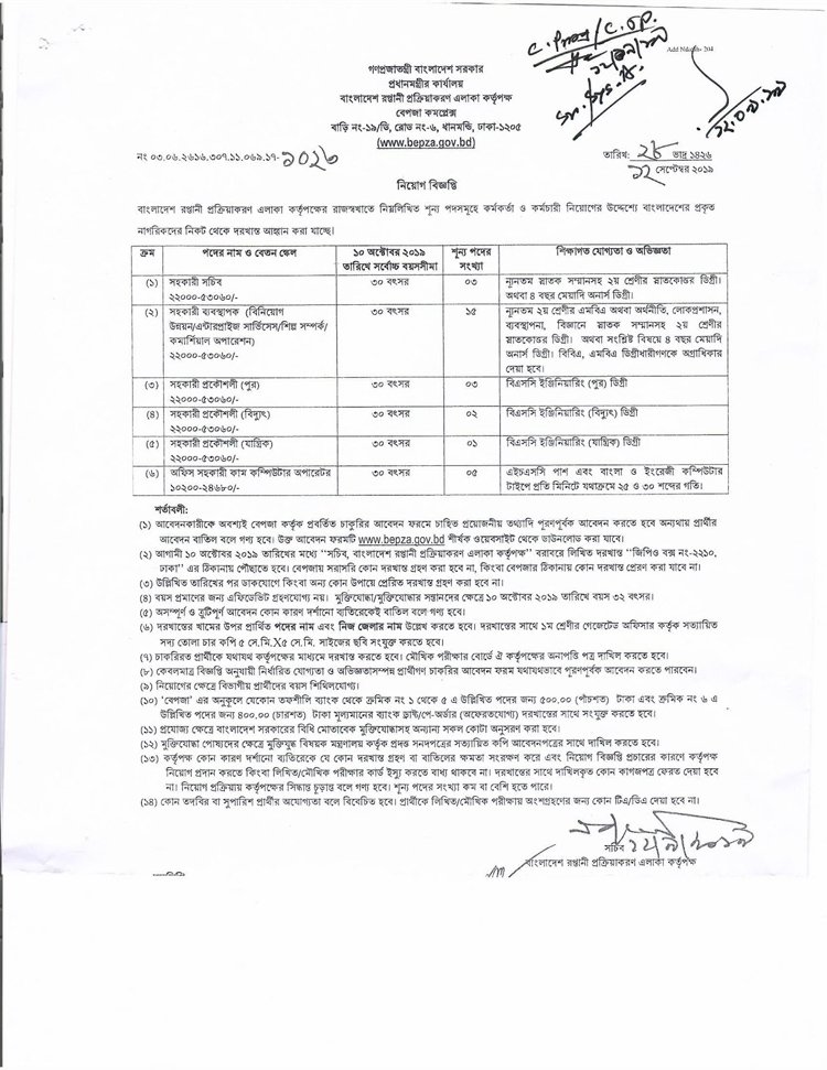 আবেদন প্রক্রিয়া: আগ্রহী প্রার্থীরা আবেদনপত্রটি http://www.bepza.gov.bd/ ওয়েবসাইট থেকে ডাউনলোড করে তা পূরণ করে ‘সচিব, বাংলাদেশ রপ্তানী প্রক্রিয়াকরণ এলাকা কর্তৃপক্ষ’ বরাবরে লিখিত দরখাস্ত ‘জিপিও বক্স নং-২২১০, ঢাকা’ এর ঠিকানায় পাঠাতে হবে।