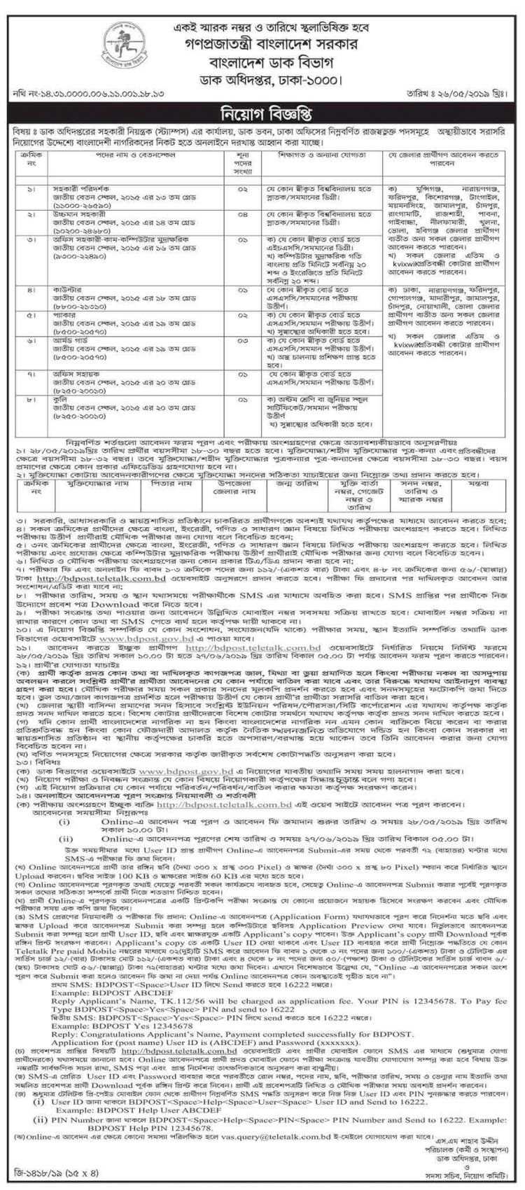 আবেদনের নিয়ম: আগ্রহীরা www.bdpost.teletalk.com.bd এর মাধ্যমে আবেদন করতে পারবেন।