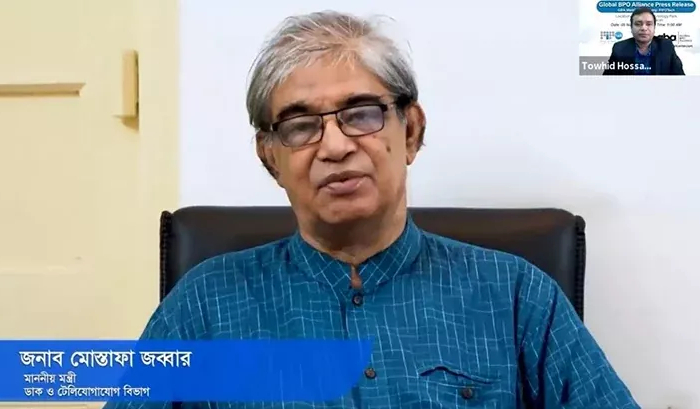 জুম কনফারেন্সে এক ভিডিও বার্তায় ডাক ও টেলিযোগাযোগ মন্ত্রী মোস্তাফা জব্বার বলেন, আমি আনন্দিত হয়েছি এই কারণে যে, গ্লোবাল বিপিও অ্যালায়েন্সের সাথে বাংলা ভাষাভাষী প্রায় ৩৫ কোটি মানুষের জন্য বাংলাদেশের একটি কোম্পানির মাধ্যমে বিপিও সেবা দেয়ার মতো আমরা একটি সুযোগ পেয়েছি।