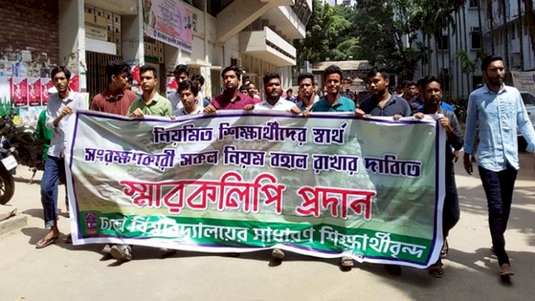 বুধবার (১৮ সেপ্টেম্বর) সকাল ১১টার দিকে ৩টি ছাত্র সংগঠন প্রগতিশীল ছাত্র জোট, ছাত্র ইউনিয়ন ও সতন্ত্র ছাত্র জোটের সদস্য ও নেতৃবৃন্দরা পরীক্ষা ছাড়া ভর্তির বিরুদ্ধে আন্দোলন শুরু করেন। এক পর্যায়ে তারা বাণিজ্য অনুষদের ডিন ও শিক্ষক সমিতির সাধারণ সম্পাদক অধ্যাপক ড. শিবলি রুবাইয়াতুল ইসলামের কার্যালয় ঘেরাও করেন।
