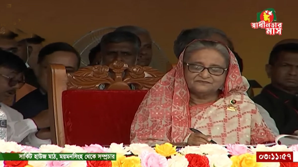 প্রধানমন্ত্রী সঙ্গে দলের সাধারণ সম্পাদক ওবায়দুল কাদের, যুগ্ম সাধারণ সম্পাদক দীপু মনিসহ দলের কেন্দ্রীয় ও ময়মনসিংহের নেতাকর্মীরা উপস্থিত রয়েছেন।