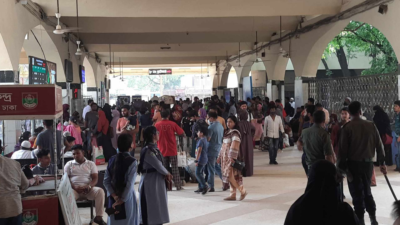 শনিবার সকালে ঢাকা রেলওয়ে স্টেশন ঘুরে দেখা যায়, ট্রেন যাত্রীদের মধ্যে একটি উৎসবমুখর পরিবেশ বিরাজ করছে। যাত্রীরা গাড়ি থেকে নেমে পায়ে হেঁটে প্ল্যাটফর্মের দিকে প্রবেশ করছেন। শুরুতেই যাত্রীদের সঙ্গে টিকিট রয়েছে কি না সেটি চেক করছেন টিটিইরা। পরের ধাপে চেক করা হচ্ছে জাতীয় পরিচয়পত্র আছে কি না। সেটির নামের সঙ্গে সাদৃশ্য রয়েছে কি না যাত্রীদের টিকিট। শেষ দফায় প্ল্যাটফর্মে প্রবেশের মুহূর্তেও রেলওয়ের ঊর্ধ্বতন কর্মকর্তাদের উপস্থিতিতে জাতীয় পরিচয়পত্র ও ট্রেনের টিকিট চেক করে দেখছেন। এরপরেই যাত্রীরা ট্রেনের সিডিউল দেখে নির্ধারিত গন্তব্যের প্ল্যাটফর্মে প্রবেশ করছেন। আর যাদের সঙ্গে টিকিট নাই, সেটা কোথাও ধরা পড়লেই তাদের ফেরত পাঠানো হচ্ছে।
