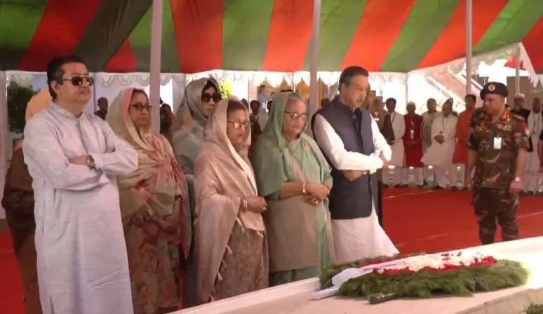 টুঙ্গিপাড়ায় জাতির পিতা বঙ্গবন্ধু শেখ মুজিবুর রহমানের সমাধি সৌধে শ্রদ্ধা নিবেদন করেছেন প্রধানমন্ত্রী শেখ হাসিনা। পাশাপাশি ফাতেহা পাঠ ও বিশেষ মোনাজাতে অংশ নেন তিনি।