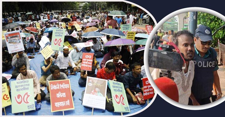 এর আগে দুপুর ১টার দিকে চাকরির বয়স ৩৫ করার দাবিতে ঢাকা বিশ্ববিদ্যালয়ের রাজু ভাস্কর্যের পাদদেশে একটি সমাবেশ করেন চাকরিপ্রত্যাশী। সমাবেশে তারা চাকরির বয়স ৩৫ করার বিভিন্ন যৌক্তিকতা তুলে ধরে বক্তব্য দেন। এরপর গণভবন অভিমুখে একটি পদযাত্রা নিয়ে শাহবাগের দিকে গেলে পুলিশ তাদের বাধা দেয়।
