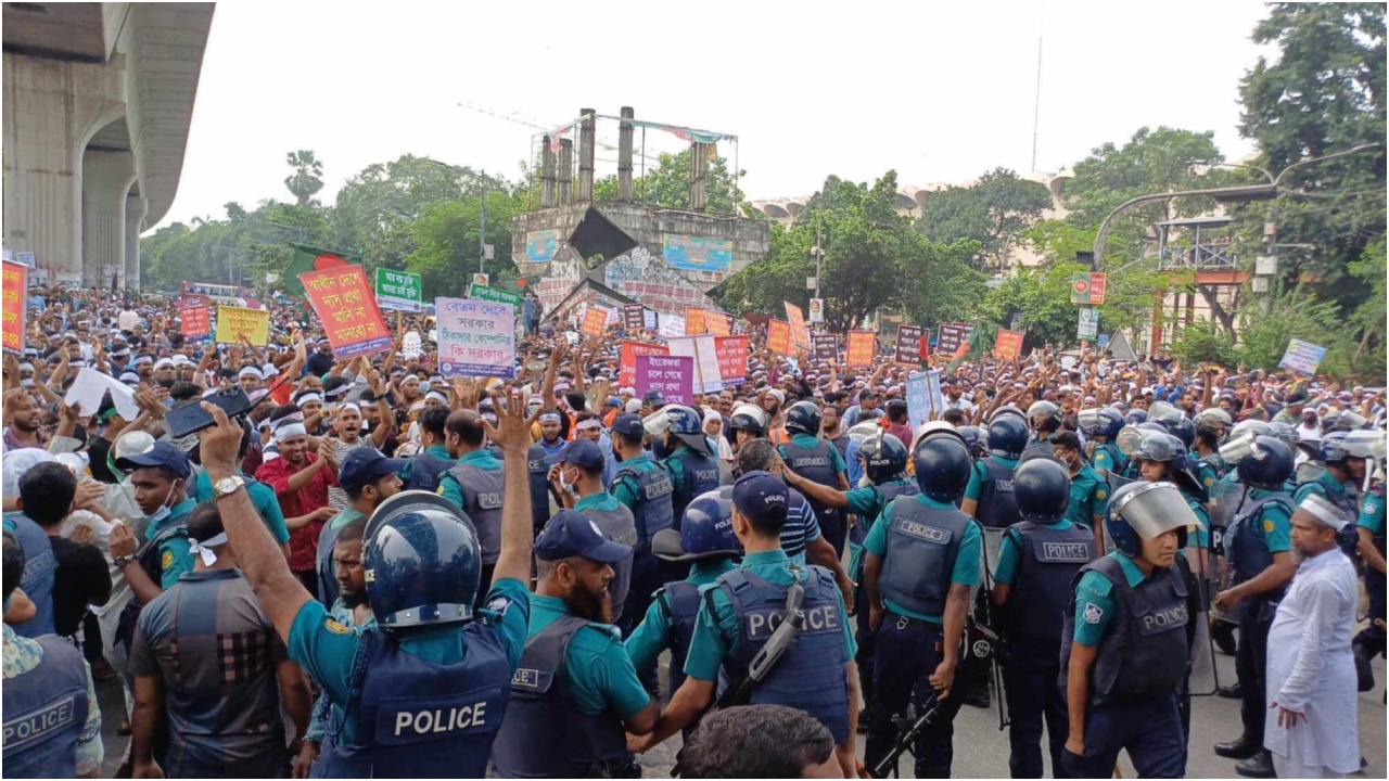 শাহবাগ মোড় অবরোধ করে আন্দোলনকারীদের ছোট-বড় ব্যানারে বিভিন্ন স্লোগান দিতে দেখা গেছে। ‘ড. ইউনূসের বাংলায় বৈষম্যের ঠাঁই নাই’, ‘ব্রিটিশদের দাসত্ব ভেঙে দাও’ সহ বিভিন্ন স্লোগান দেন তারা।
