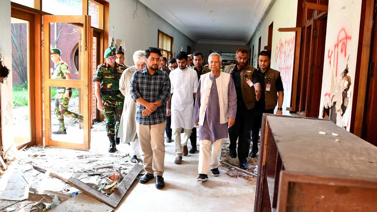 পতিত আওয়ামী লীগ সরকারের সাবেক প্রধানমন্ত্রী শেখ হাসিনার বাসভবন গণভবন পরিদর্শন করেছেন প্রধান উপদেষ্টা ড. মুহাম্মদ ইউনূস। এসময় তিনি জুলাই-আগস্টের গণঅভ্যুত্থানের স্মৃতি হিসেবে গণভবনে দ্রুততার সঙ্গে জাদুঘর নির্মাণ শেষ করতে উপদেষ্টাদের নির্দেশনা দেন।