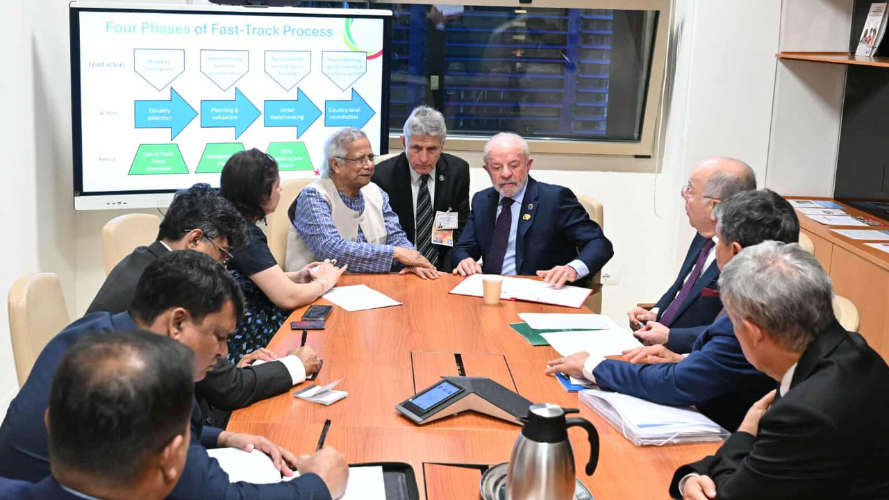 প্রেসিডেন্ট লুলা অধ্যাপক ইউনূসকে আমন্ত্রণ জানান আগামী কপ-৩০ সম্মেলনে যোগ দিতে, যা অ্যামাজন অঞ্চলের একটি রাজ্যে অনুষ্ঠিত হবে—বিশ্বের বৃহত্তম উষ্ণমণ্ডলীয় অরণ্য সংরক্ষণের লড়াইয়ে বৈশ্বিক মনোযোগ আকর্ষণের উদ্দেশ্যে।