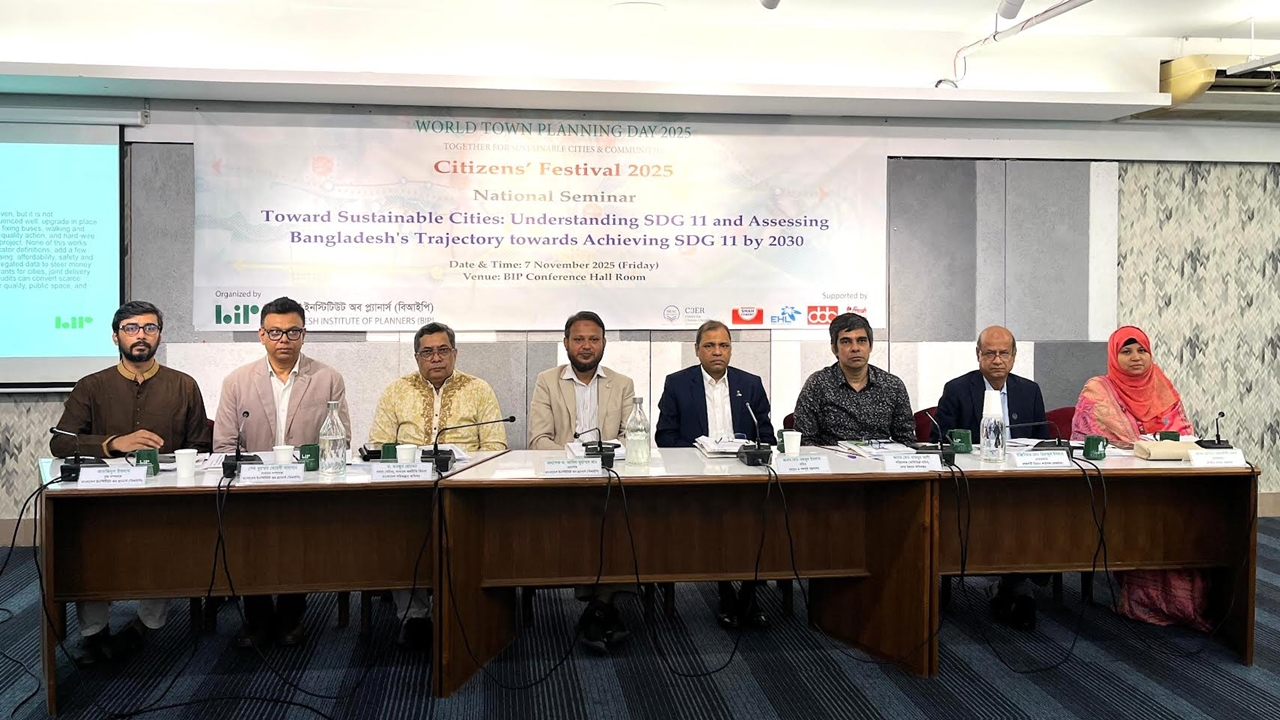 সেমিনারে গৃহায়ন ও গণপূর্ত মন্ত্রণালয়ের সচিব নজরুল ইসলাম বলেন, টেকসই উন্নয়ন লক্ষ্যমাত্রার মূল উদ্দেশ্য হলো দারিদ্র্য দূরীকরণ এবং সব শ্রেণির মানুষের জন্য নিরাপদ ও স্বাস্থ্যস্মত জীবনযাপন নিশ্চিত করা। ডিটেইল্ড এরিয়া প্ল্যানে (ড্যাপ) যেসব এলাকা কৃষিজমি ও জলাধার হিসেবে নির্ধারিত ছিল, আজ তার অনেকটুকু দখল-দূষণে হারিয়ে গেছে, যা পরিকল্পিত নগরায়নের জন্য একটি বড় উদ্বেগের বিষয়।