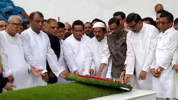 প্রথমে আওয়ামী লীগ সভাপতি প্রধানমন্ত্রী শেখ হাসিনার পক্ষে দলের সাধারণ সম্পাদক ওবায়দুল কাদেরের নেতৃত্বে ফুল দিয়ে শ্রদ্ধা জানানো হয়। পরে বিভিন্ন রাজনৈতিক দলের নেতৃবৃন্দ শ্রদ্ধা জানান।