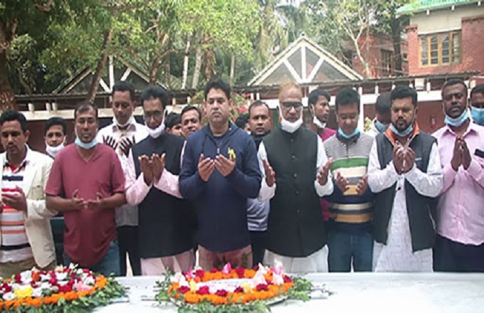 আওয়ামী যুবলীগের প্রতিষ্ঠাতা চেয়ারম্যান শেখ ফজলুল হক মনির ৮১তম জন্মদিন উপলক্ষে গোপালগঞ্জের টুঙ্গিপাড়ায় জাতির পিতা বঙ্গবন্ধু শেখ মুজিবুর রহমানের সমাধিতে শ্রদ্ধা জানিয়েছে টুঙ্গিপাড়া উপজেলা যুবলীগ।