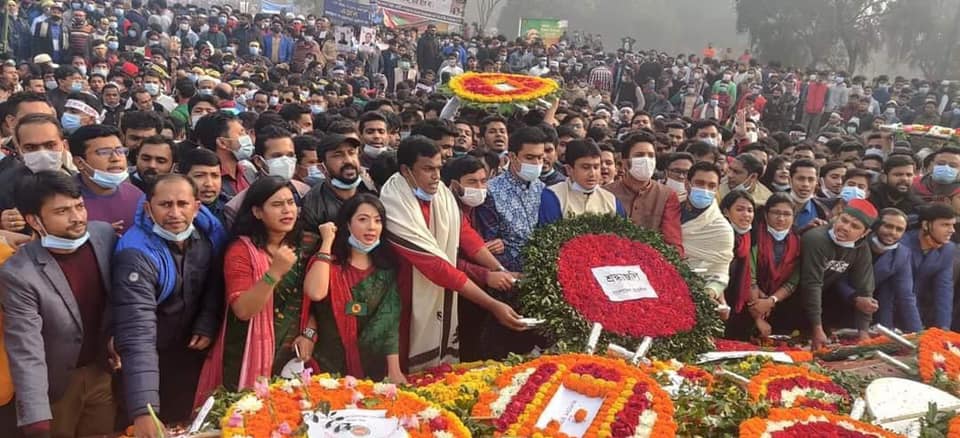 মহান বিজয় দিবসে সাভারে জাতীয় স্মৃতিসৌধে ফুল দিয়ে বীর শহীদদের শ্রদ্ধা জানিয়েছেন বাংলাদেশ ছাত্রলীগ। বুধবার সকালে ছাত্রলীগের সভাপতি আল নাহিয়ান খান জয় ও সাধারণ সম্পাদক লেখক ভট্টাচার্যের নেতৃত্বে এ শ্রদ্ধাঞ্জলি নিবেদন করেন সংগঠনের নেতাকর্মীরা।