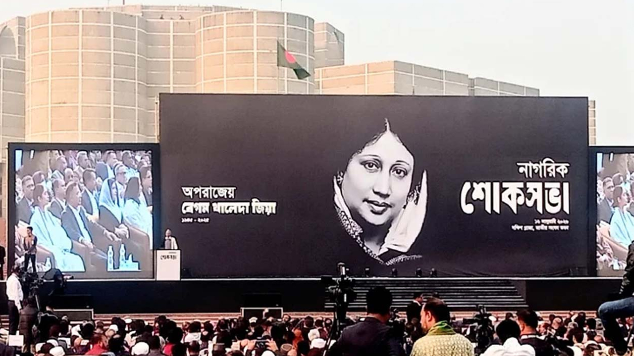 শুক্রবার (১৬ জানুয়ারি) জাতীয় সংসদ ভবনের দক্ষির প্লাজায় আয়োজন করা হয় এ শোকসভার। এতে অংশ নেন দেশের রাজনৈতিক, সামজিক, সাংস্কৃতিক শ্রেণির নাগরিক এবং বিভিন্ন দেশ ও আন্তর্জাতিক সংস্থার প্রতিনিধিরা।