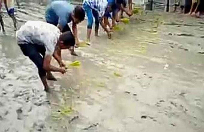 রাস্তার বেহাল অবস্থায় ধানের চারা রোপণ করে প্রতিবাদ জানালেন হবিগঞ্জ জেলার বানিয়াচং-আজমিরীগঞ্জ ভায়া শিবপাশা সড়ক সংশ্লিষ্ট এলাকাবাসী।