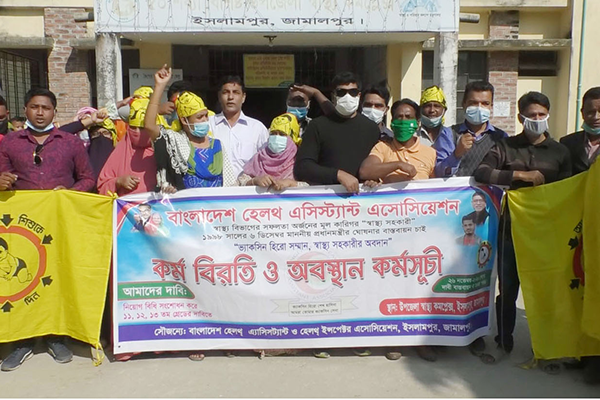 জামালপুরের ইসলামপুরে নিয়োগবিধি সংশোধনের দাবিতে চতুর্থ দিনের মতো কর্মবিরতি পালন করেছে স্বাস্থ্যকর্মীরা। সোমবার সকাল থেকে জামালপুরের ইসলামপুর উপজেলা স্বাস্থ্য ও পরিবার পরিকল্পনা কার্যালয় চত্বরে এ কর্মবিরতি ও অবস্থান কর্মসূচির আয়োজন করে বাংলাদেশ হেলথ এ্যাসিস্ট্যান্ট ও হেলথ ইন্সপেক্টর এসোসিয়েশন ইসলামপুর উপজেলা শাখা।