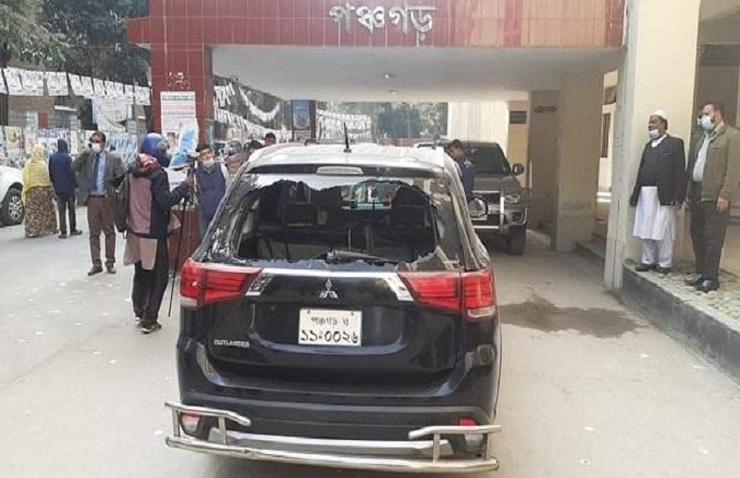 জেলা নির্বাচন অফিসার মো. আলমগীর জানান, পর্যবেক্ষণে গিয়ে হঠাৎ কালেক্টরেট স্কুলের সামনে দুর্বৃত্তদের হামলার শিকার হই। এ সময় গাড়ির পেছনের গ্লাসসহ গাড়িতে থাকা একজন পুলিশ সদস্য আহত হন।