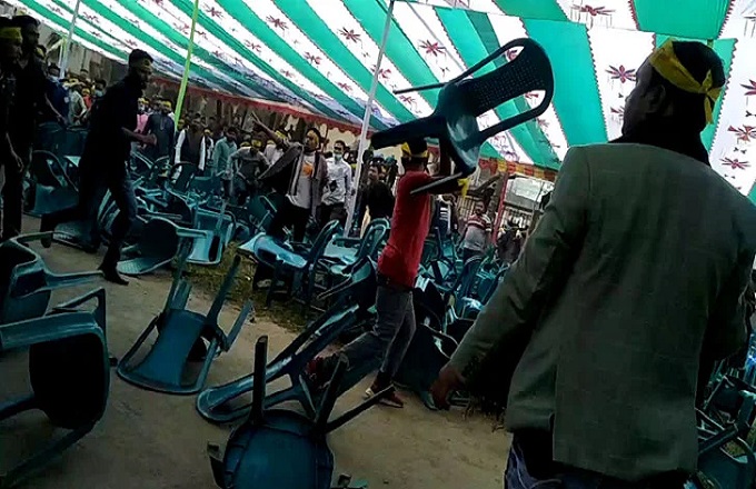 আলোচনা সভা অনুষ্ঠানের শুরুতে নিয়ম ভঙ্গ করে সিনিয়র ছাত্রলীগ নেতাদের নাম আগে মাইকে ঘোষণা না দিয়ে জুনিয়র ছাত্রলীগ নেতাদের নাম ঘোষণা দেয়া হয়। এর জের ধরে ছাত্রলীগের একাংশ ক্ষিপ্ত হয়ে তাৎক্ষণিকভাবে চেয়ার ছোড়াছুড়ি করে এবং ভাংচুরের ঘটনা ঘটায়। মুহূর্তের মধ্যে পুরো অনুষ্ঠানে উত্তেজনা ছড়িয়ে পড়ে। পরে অনুষ্ঠানের বিশেষ অতিথি উপজেলা চেয়ারম্যান মীর গোলাম ফারুক ও বিশেষ অতিথি উপজেলা আওয়ামী লীগের সাধারণ সম্পাদক তৌফিকুজ্জামান শাহীনের হস্তক্ষেপে পরিস্থিতি নিয়ন্ত্রণে আনা হয়।