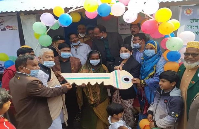 বঙ্গবন্ধু শেখ মুজিবুর রহমানের জন্মশত বার্ষিকী মুজিববর্ষ উপলক্ষে নীলফামারীর ডিমলায় প্রধানমন্ত্রীর উপহার হিসেবে আশ্রয়ণ প্রকল্প-২ এর প্রথম পর্যায়ের ভুমিহীন ও গৃহহীন পরিবারের মাঝে জমিসহ গৃহ হস্তান্তরের উদ্বোধন করা হয়েছে।