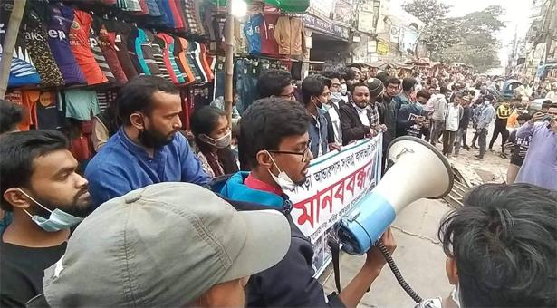 শনিবার (৩০ জানুয়ারি) প্রতিবাদ কর্মসূচিতে অংশ নেন কয়েকশ’ মানুষ।