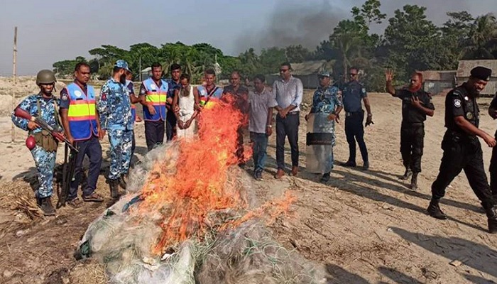 হামলার পর যৌথ অভিযান চালিয়ে এক জেলেকে আটক করা সহ ১০ লক্ষাধিক মিটার কারেন্ট জাল জব্দ করা হয়।