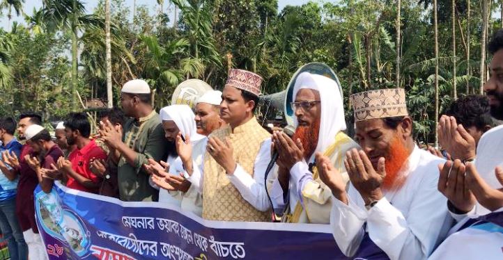 মোনাজাতের আগে আইনজীবী সাত্তার পালোয়ান বলেন, ‘জোয়ারে আমার মায়ের কবরে পানি উঠে যায়। এটি দেখলে আমার কলিজা ফেটে যায়। আমার মায়ের পাশে আমাকে কবর দেওয়ার জন্য বলে রেখেছি। কিন্তু নদী তীর রক্ষা বাঁধ দ্রুত বাস্তবায়ন না হলে ভাঙনে সব বিলীন হয়ে যাবে। এজন্য নদী ভাঙন থেকে রক্ষা পেতে আল্লাহর কাছে হাত তুলেছি। প্রধানমন্ত্রী আমাদের নদী ভাঙন রোধে মেগা প্রকল্প দিয়েছেন। দ্রুত সেই প্রকল্প বাস্তবায়নের জন্য তার হস্তক্ষেপ কামনা করছি।’