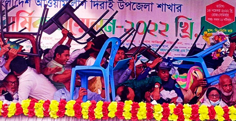 পুলিশ ও দলীয় একাধিক সূত্র জানায়, উপজেলা আওয়ামী লীগের বহিষ্কৃত নেতা সাবেক পৌর মেয়র মোশারফ মিয়ার নেতৃত্বে সম্মেলন শুরু হলে বিক্ষোভ মিছিল নিয়ে মঞ্চের সামনে এসে কেন্দ্রীয় নেতাদের লক্ষ্য করে ইট-পাটকেল ছুড়তে থাকেন বিক্ষুব্ধ নেতাকর্মীরা। একপর্যায়ে তারা চেয়ার হাতে নিয়ে নিজেদের রক্ষা করেন। পরে পুলিশ এসে তাদের মঞ্চ থেকে নামিয়ে নিয়ে যায়। এসময় উভয়পক্ষের সংঘর্ষে ঢিলের আঘাতে আহত হন আরমানসহ অন্তত ৫০ জন।