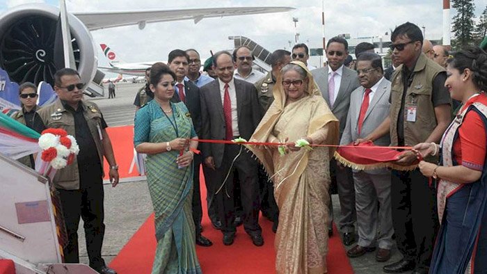 আকাশে উড়ল বোয়িং ৭৮৭-৮ ড্রিমলাইনার উড়োজাহাজ ‘রাজহংস’। প্রধানমন্ত্রী শেখ হাসিনা আজ বিকেল ৪টায় হযরত শাহজালাল আন্তর্জাতিক বিমানবন্দরের ভিআইপি টার্মিনাল এলাকায় রাজহংসের আনুষ্ঠানিক উদ্বোধন করলেন।