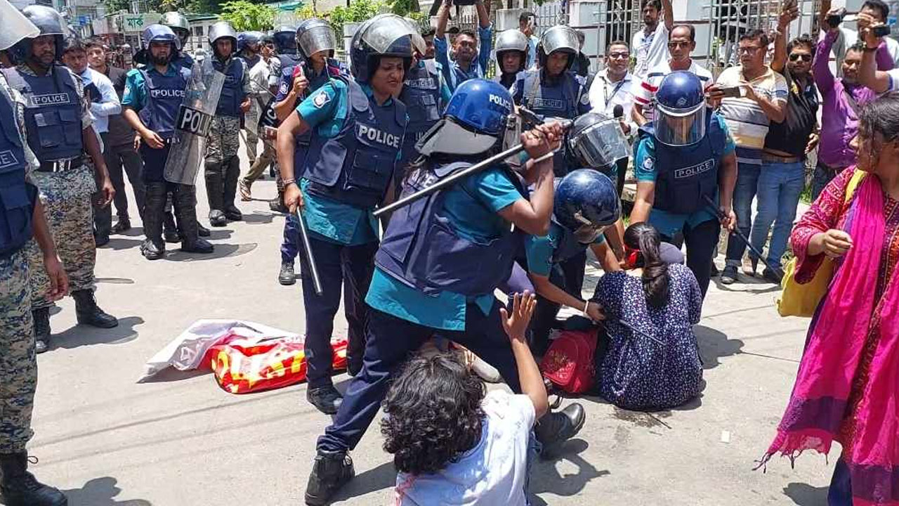 আহত শিক্ষার্থী সেতু জানান, আন্দোলনরত শিক্ষার্থী ও সাধারণ মানুষ হত্যার প্রতিবাদে আমাদের শান্তিপূর্ণ কর্মসূচিতে কয়েকশ পুলিশ ও বিজিবি সদস্য একসঙ্গে লাঠিপেটা শুরু করে। আমরা বলেছি, আমরা সড়কের পাশে কর্মসূচি পালন করব। আমাদের কর্মসূচিতে কোনো সহিংসতা নেই। কিন্তু পুলিশ আমাদের ওপর সহিংসভাবে লাঠিপেটা শুরু করে। কমপক্ষে ২৫ জনকে মারধর করেছে পুলিশ।