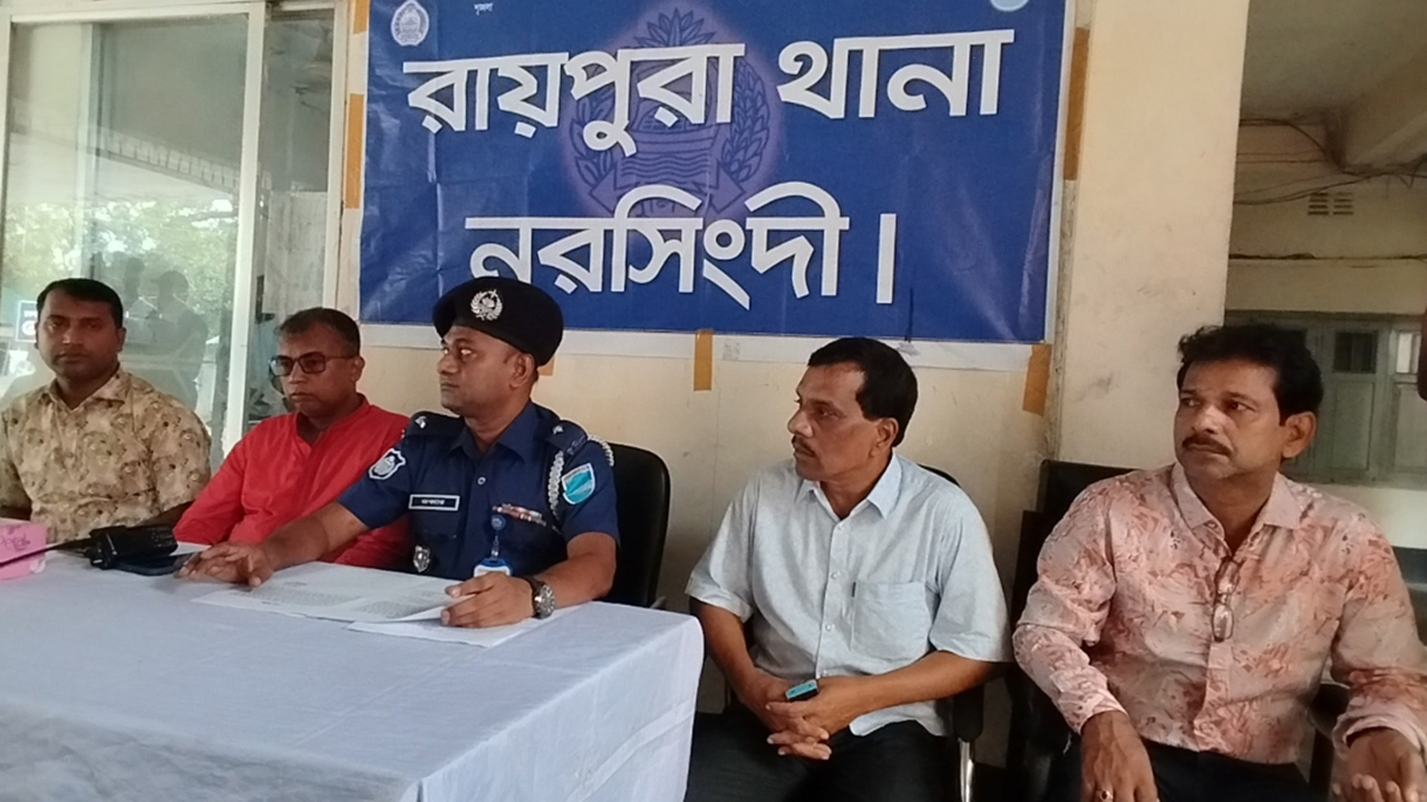 নরসিংদীর রায়পুরায় পূজামণ্ডপের প্যান্ডেল ভাঙচুর নিয়ে সামাজিক যোগাযোগমাধ্যম ফেসবুকে গুজব ছড়ানোর ঘটনায় প্রতিবাদ জানিয়ে সংবাদ সম্মেলন করেছে রায়পুরা থানা প্রশাসন।