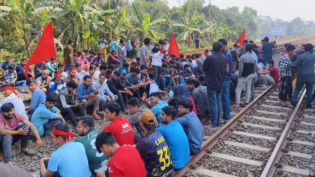 জয়দেবপুর রেলওয়ে জংশনের স্টেশন মাস্টার আবুল খায়ের চৌধুরী বলেন, শিক্ষার্থীরা তাদের দাবি নিয়ে রেললাইন অবরোধ করেছে। তারা সিরাজগঞ্জ এক্সপ্রেস ট্রেন কিছু সময় আটকে রেখেছিল, পরে ছেড়ে দিয়েছে। তবে সাময়িক সময়ের জন্য ওই রুটে ট্রেন চলাচল বন্ধ রয়েছে