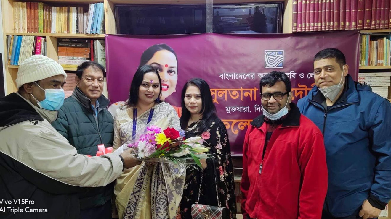 জনপ্রিয় কবি ও সাহিত্যিক সুলতানা ফিরদৌসীকে সম্মাননা জানিয়েছে নিউইয়র্কের বাংলা বইয়ের গুরুত্বপূর্ণ প্রকাশনা প্রতিষ্ঠান মুক্তধারা। গত ১৪ই ডিসেম্বর সোমবার এই সম্মাননা অনুষ্ঠানের আয়োজন করা হয়। জ্যাকসন হাইটসের মুক্তধারা কার্যালয়ে করোনার কারণে সামাজিক দূরত্ব মেনে করা অনুষ্ঠানে সীমিত সংখ্যক অতিথি উপস্থিত ছিলেন।