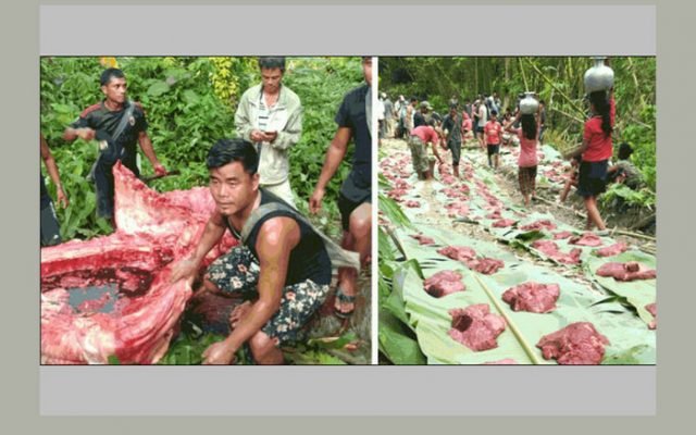 ভারতের মিজোরাম রাজ্যে অদ্ভুত ঘটনা ঘটে। ওই রাজ্যের লোকেরা একটি মৃত হাতির মাংস কেটে নিয়েছেন। পরে একসঙ্গে বসে সেই মাংস ভক্ষণ করেছেন তারা।