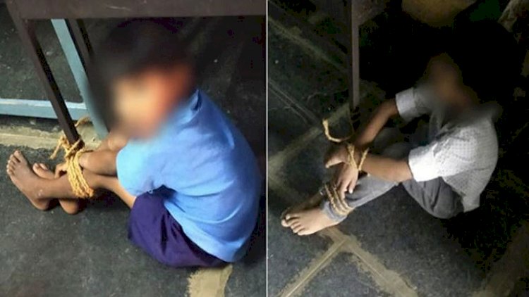 বেঞ্চের পাশে মাটিতে বসে আছে দুটি বাচ্চা ছেলে। বেঞ্চের পায়ার হাত-পা দড়ি দিয়ে বাঁধা। স্কুলে ‘দুষ্টুমি’ করার জন্য এভাবে শাস্তি দেয়া হয়েছে তাদের। সামাজিক যোগাযোগ মাধ্যমে সেই ঘটনার ছবি ছড়িয়ে পড়তেই সমালোচনার ঝড় উঠেছে। স্কুল কর্তৃপক্ষের বিরুদ্ধে শাস্তির দাবি তুলেছেন নাগরিক সমাজের একাংশ।