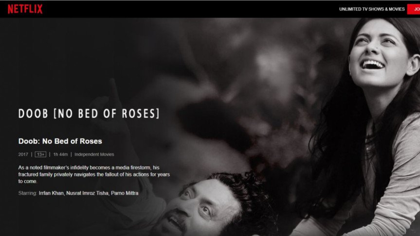 আলোচিত ‘ডুব’ সিনেমা মুক্তির প্রায় সাড়ে তিন বছর পর জনপ্রিয় স্ট্রিমিং প্ল্যাটফর্ম নেটফ্লিক্সে মুক্তি পেয়েছে। গতকাল শুক্রবার থেকে প্ল্যাটফর্মটিতে দেখা যাচ্ছে সিনেমাটি। সিনেমাটি নির্মাণ করেছে নির্মাতা মোস্তফা সরোয়ার ফারুকী।