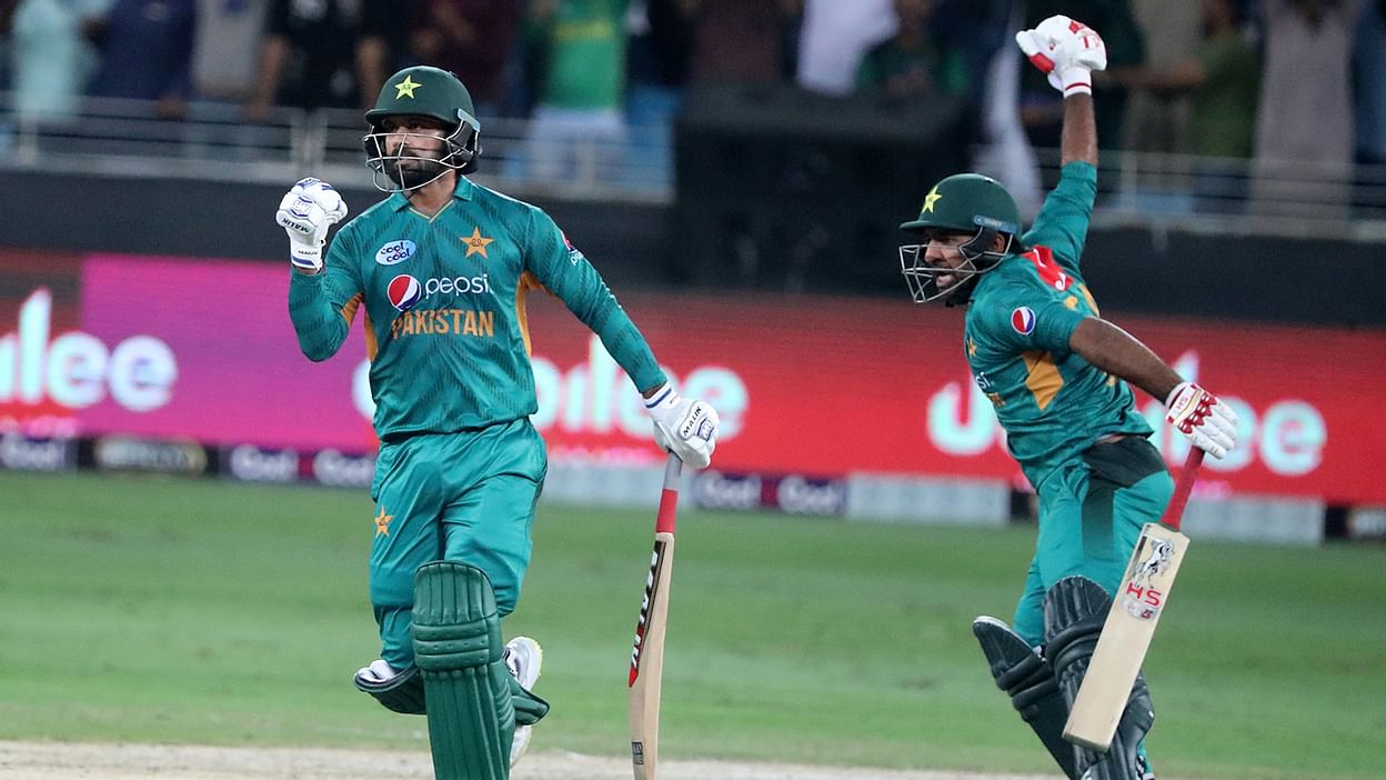 শেষদিকে মোহাম্মদ নওয়াজ ও হাসান আলীর দায়িত্বশীল ব্যাটিংয়ে ৮ বল হাতে রেখেই ৪ উইকেটের জয় পায় পাকিস্তান। ৭ বলে ২০ আর ১১ বলে ১৮ রানে অপরাজিত থেকে দলের জয় নিশ্চিত করে মাঠ ছাড়েন হাসান আলী-মোহাম্মদ নওয়াজ।
