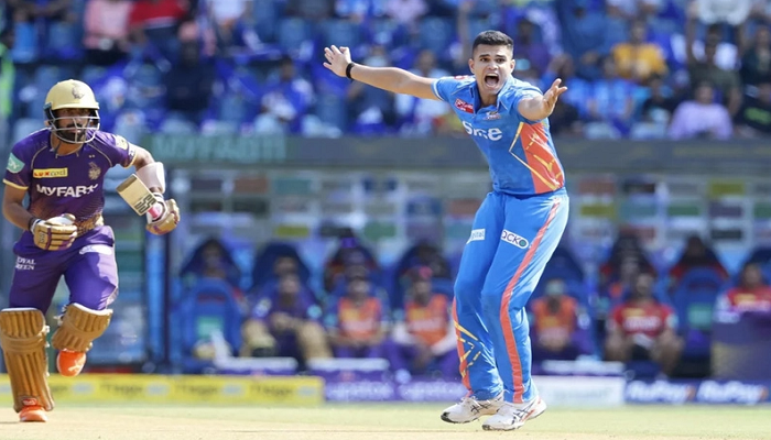 টস জিতে ফিল্ডিং নিয়েছে মুম্বাই ইন্ডিয়ান্স। অর্জুনকে দিয়েই বোলিং উদ্বোধন করান আজকের ম্যাচে মুম্বাইকে নেতৃত্ব দেওয়া সূর্যকুমার যাদব। নিজের অভিষেক ওভারে ২৩ বছর বয়সী এ বাঁহাতি পেসার মাত্র ৫ রান দেন। কোনো বাউন্ডারি হজম করেননি।  নিলামের শেষ মুহূর্তে অর্জুনকে কিনেছিল আইপিএলের মুম্বাই ইন্ডিয়ান্স। এবার দেখার তিনি কী প্রতিদান দেন।