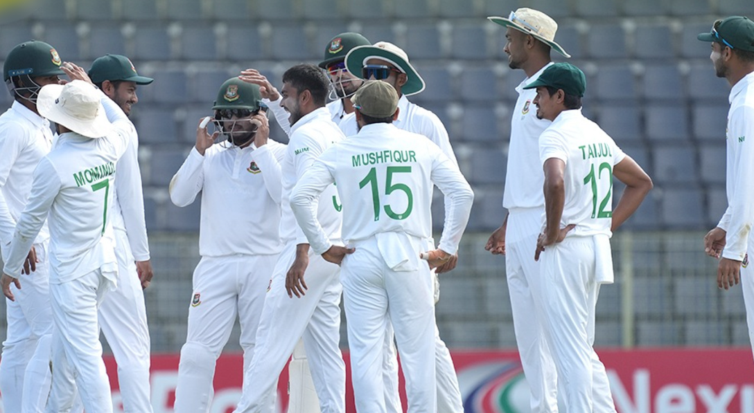 আজ (বুধবার) সিরিজের দ্বিতীয় ও শেষ টেস্টে মিরপুরের হোম অব ক্রিকেটে টস জিতে আগে ব্যাট করার সিদ্ধান্ত নিয়েছিলেন অধিনায়ক নাজমুল হোসেন শান্ত। ঘূর্ণিঝড় মিগজিউমের প্রভাবে আকাশে মেঘ থাকায় এদিন শুরু থেকেই খেলা হয়েছে ফ্লাডলাইটের আলোতে। কৃত্রিম আলোর নিচে টাইগার ব্যাটাররা রীতিমতো খাবি খেয়েছেন স্পিনারদের সামনে। মাত্র ১৭২ রানেই অলআউট হয় বাংলাদেশ।