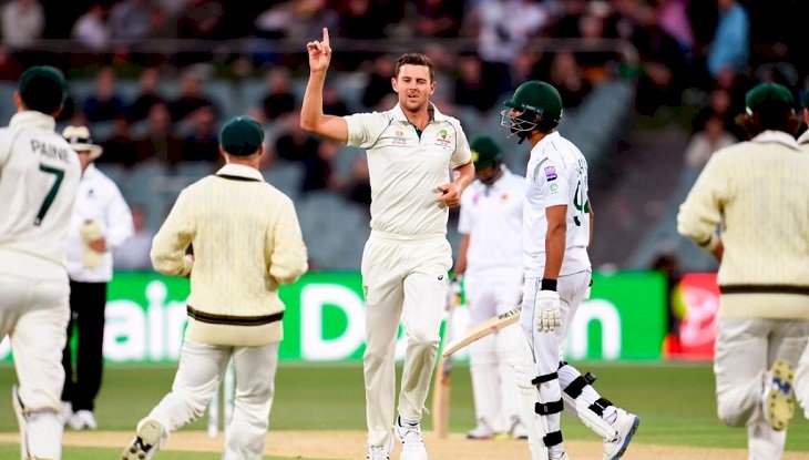 এরপর ৩৮ রানে শান মাসুদকে আউট করেন হ্যাজেলউড। স্কোরবোর্ডে ৮৯ রান তুলতেই আরও তিন উইকেট হারায় পাকিস্তান। তিনটি উইকেটই শিকার করেন স্টার্ক। দিনশেষে পাকিস্তানের সংগ্রহ দাঁড়ায় ৬ উইকেটে ৯৬ রান। বাকিদের আসা যাওয়ার মিছিলে দাঁড়িয়ে একা লড়ে যাচ্ছেন বাবর আজম। তিনি অপরাজিত আছেন ৪৩ রানে। ফলোআন এড়াতে ইয়াসির শাহকে সঙ্গে নিয়ে তৃতীয় দিনের লড়াই শুরু করবেন বাবর।