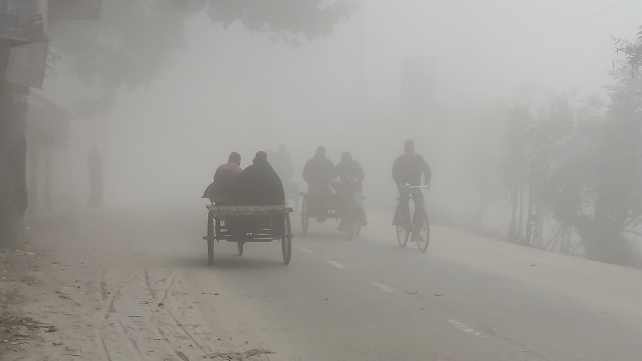 উত্তরের সীমান্তবর্তী জেলা দিনাজপুরে শীতল বাতাস আর ঘন কুয়াশায় মোড়ানো পথঘাট। এতে মহাসড়কে হেড লাইট জ্বালিয়ে চলাচল করছে সব ধরনের যানবাহন।