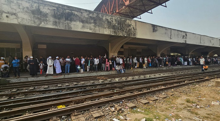 অপরদিকে স্টেশন থেকে একটি সূত্র জানান, সাড়ে ১০টার দিকে কমলাপুর রেলস্টেশন থেকে একটি ট্রেন বেরিয়ে যাওয়ার সময় লক্ষ্য করা যায় ট্রেনের ছাদে প্রচুর যাত্রী অবস্থান নিয়েছে আর ভেতরে তো যাত্রীদের গাদাগাদি অবস্থা।